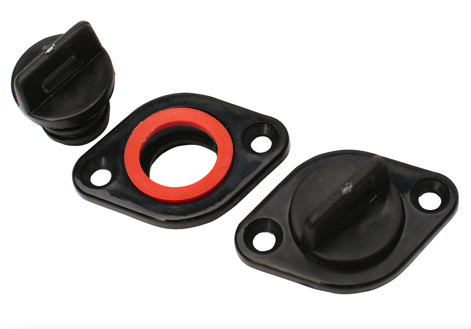 Bouchons de vidange de tiroir DECKED, jeu de deux avec joints. Recommandé pour les systèmes de tiroirs DECKED full-size, courts et midsize uniquement.