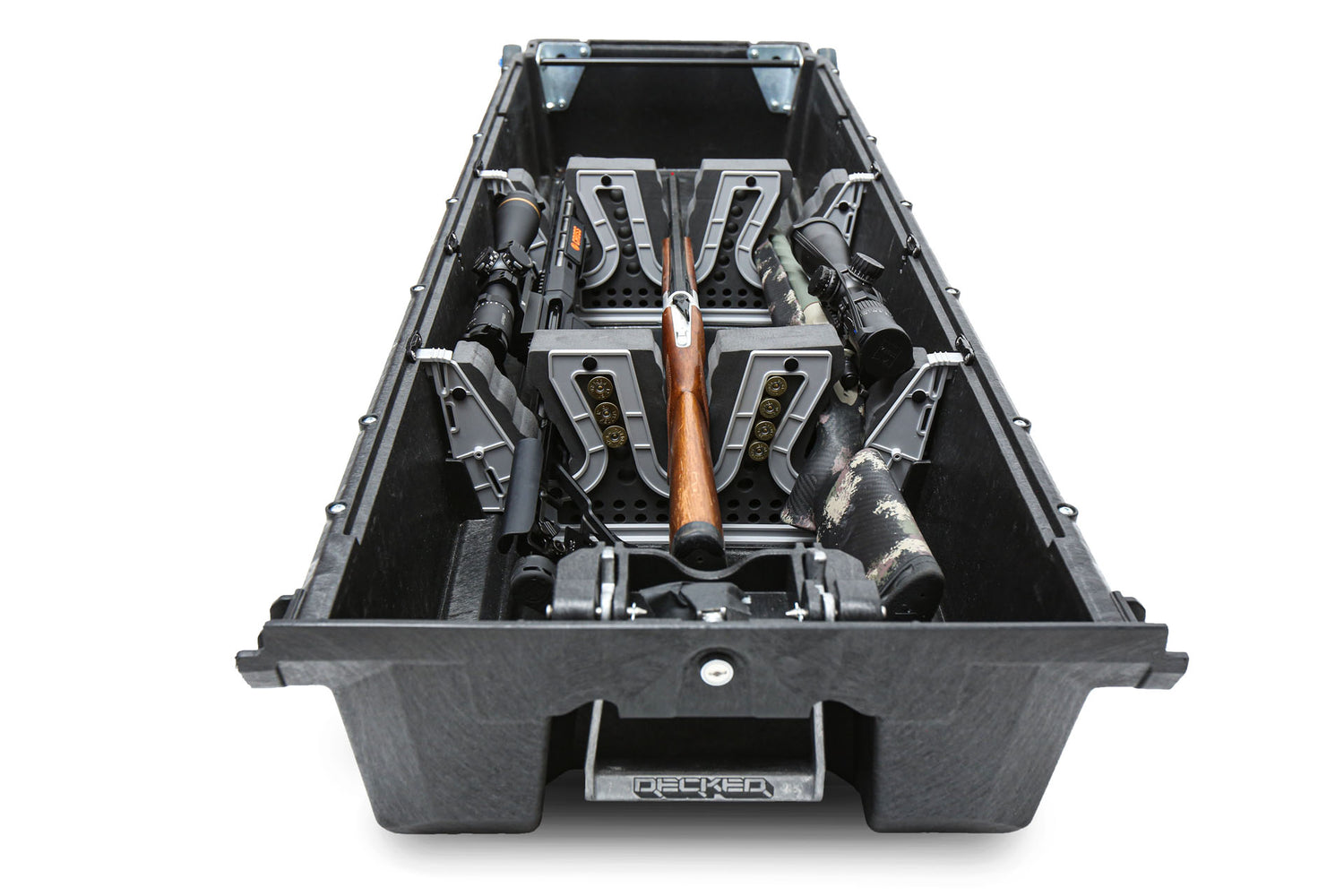 Le Piecekeepers permet de sécuriser le transport d’armes pour la chasse, ou de cannes à peche à l’intérieur de votre tiroir DECKED
