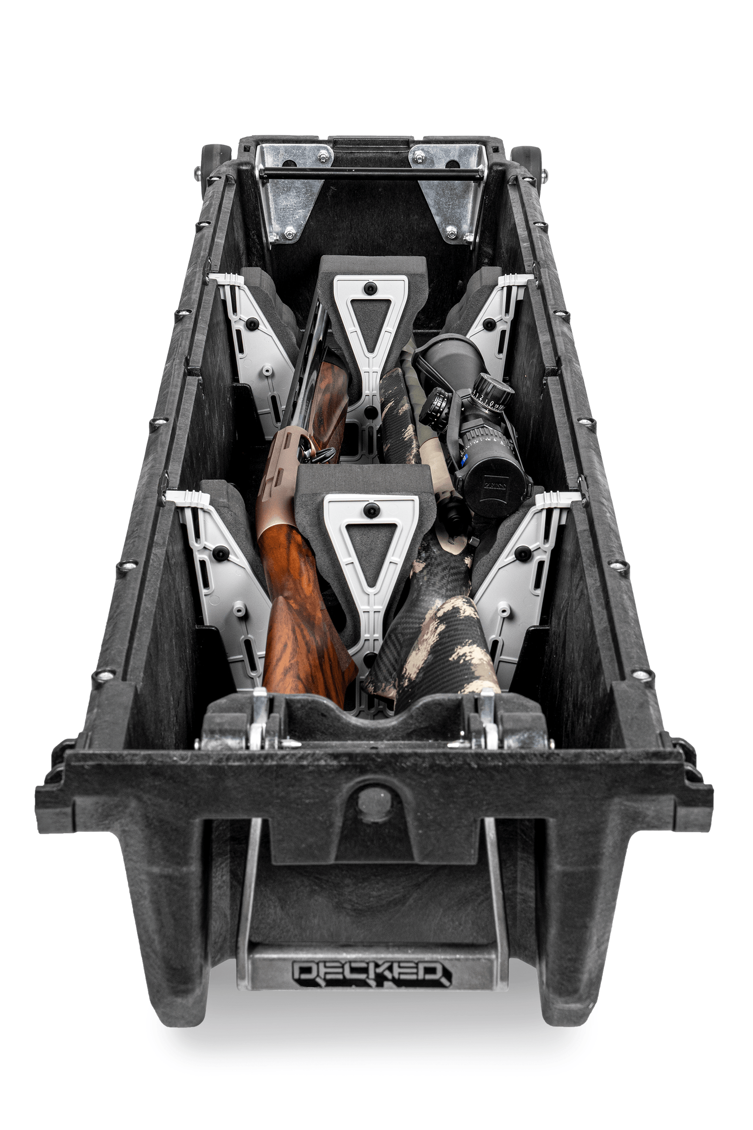 Le Piecekeepers permet de sécuriser le transport d’armes pour la chasse, ou de cannes à  peche  à l’intérieur de votre tiroir DECKED